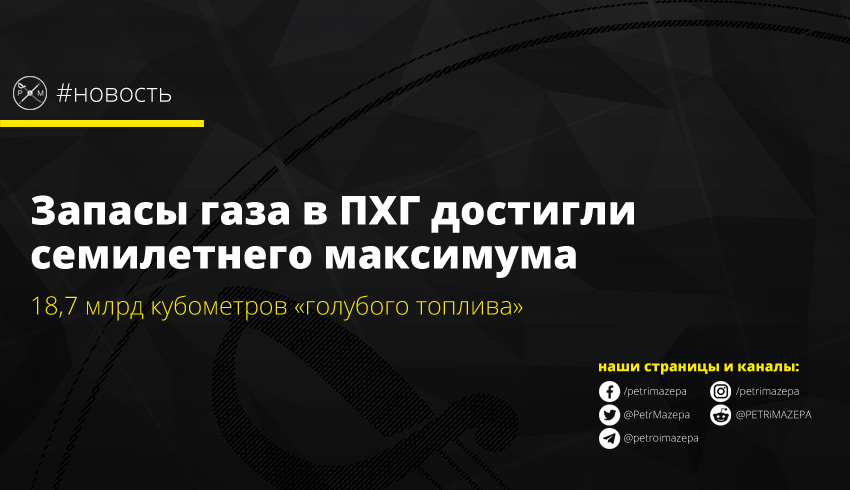 Объемы «голубого топлива» в подземных хранилищах газа (ПХГ) Украины достигли 18,7 млрд кубометров. Это самый высокий показатель за последние семь лет.