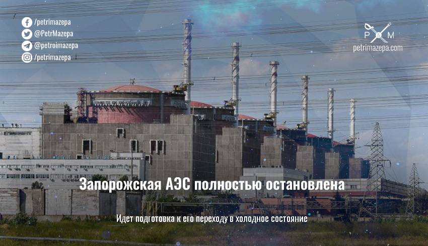 В ночь на воскресенье 11 сентября энергоблок №6 Запорожской АЭС отключили от энергосети. Сейчас идет подготовка к его переходу в холодное состояние.