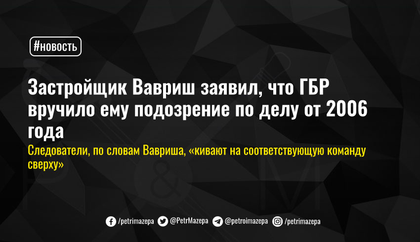 Застройщик Вавриш заявил, что ГБР вручило ему подозрение по делу от 2006 года