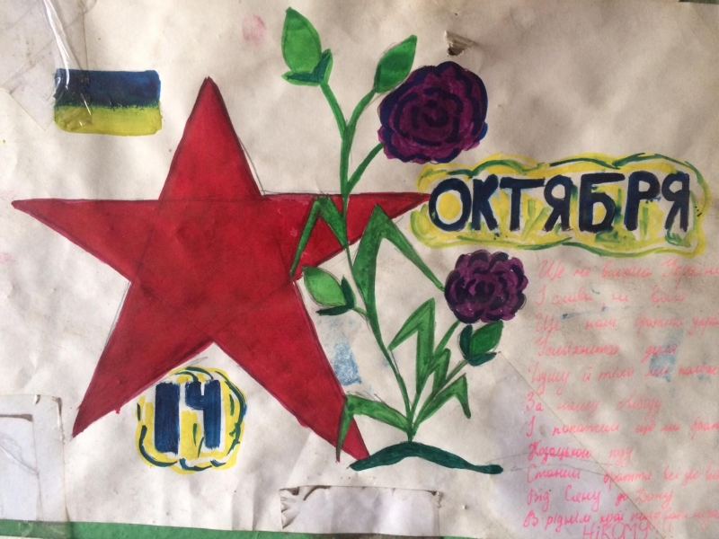 P.S. Цей малюнок — подарунок від дітей до Дня захисника України!!! На одній із позицій передньої лінії.