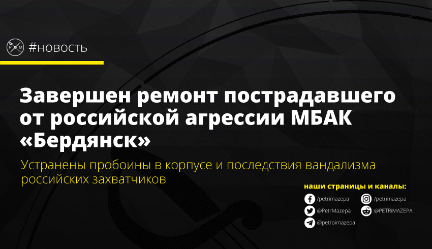 Завершен ремонт пострадавшего от российской агрессии МБАК «Бердянск»