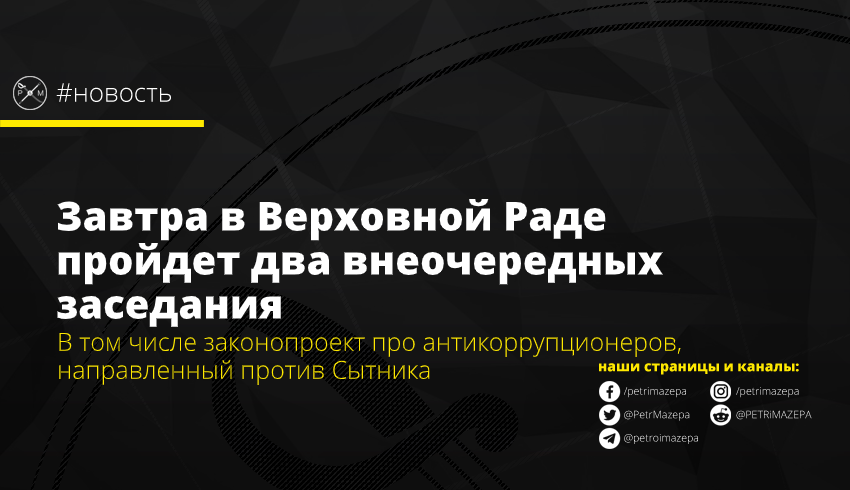 А вот второе заседание было созвано по требованию 150 нардепов. На нем рассмотрят законопроект №3133 о внесении изменений в некоторые законодательные акты касаемо повышения эффективности противодействия коррупции в отдельных правоохранительных и других государственных органов. Народный депутат «Слуги народа» Александр Дубинский, которого связывают с олигархом Игорем Коломойским, уже заявил, что этот законопроект позволит отправить в отставку главу НАБУ Артема Сытника.
