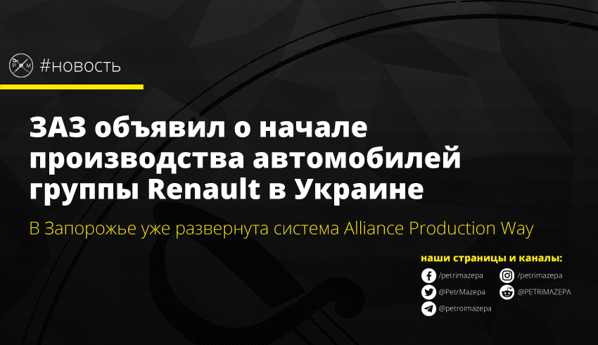 Запорожский автомобилестроительный завод объявляет о начале производства автомобилей Groupe Renault для местного рынка. Реализовывается проект на мощностях в Запорожье. И представляет собой «локализованную сборку».