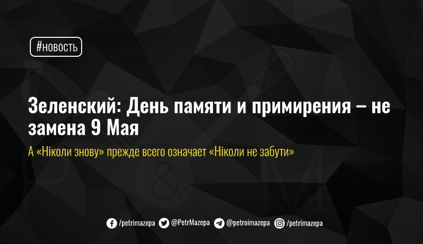 Зеленский: День памяти и примирения – не замена 9 Мая