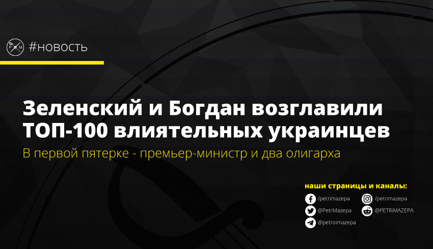 Президент Владимир Зеленский и глава ОПУ Андрей Богдан возглавили рейтинг 100 самых влиятельных украинцев, составленный журналом «Фокус». В первую пятерку также вошли олигархи Ринат Ахметов и Игорь Коломойский, а замыкает ее премьер-министр Алексей Гончарук.