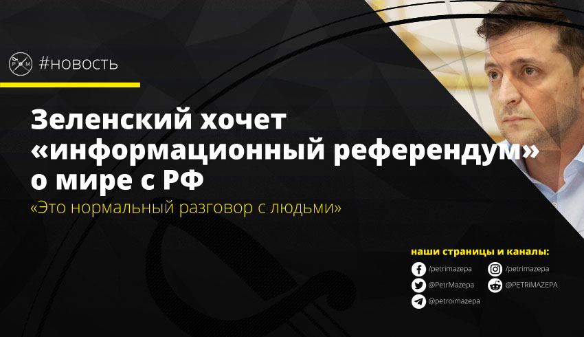 Президент Владимир Зеленский подтвердил свое желание вынести вопрос касательно заключения мирных договоренностей с Россией на референдум, однако «не законодательный, а информационный», чтобы узнать мнение общества.