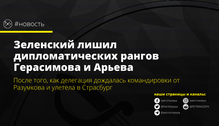 Сначала для делегации Украины в ПАСЕ Верховная рада затягивала с подписью командировки для народных депутатов. А вскоре после того, как «старая делегация» и «новая Рада» достигли консенсуса по спорному пункту и Дмитрий Разумков подписал им командировку, в дело вмешался президент Украины Владимир Зеленский. Он лишил рангов Артура Герасимова и Владимира Арьева, которые уже вылетели в Страсбург.