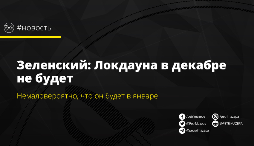 Президент Владимир Зеленский в очередном видео заявил, что в декабре локдауна в Украине не будет.