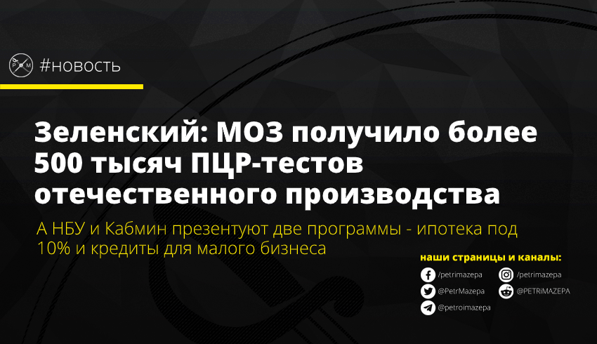 Так, президент рассказал, что МОЗ уже получило более 500 тысяч ПЦР-тестов, сегодня ожидается получение еще 200 тысяч тестов. При этом, глава государства отметил, что сейчас стоит амбициозная цель - проводить не менее 10 тысяч ПЦР-тестов в день. При этом, глава МОЗ Максим Степанов сегодня на брифинге сообщал, что министерство получило 450 тысяч тестов и ожидает получение еще 160 тысяч 27 апреля. При этом, за последние сутки по состоянию на утро провели 4251 тестов. Кроме того, вновь ожидается прибытие самолетов из Китая со средствами защиты.