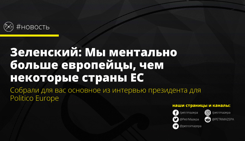 На сайте президента Украины опубликовали «полную версию» интервью Владимира Зеленского для Politico Europe. Мы сделали для вас краткую выжимку, чтобы не было необходимости переключаться между десятком новостей с одного события или читать прямую речь Зеленского.