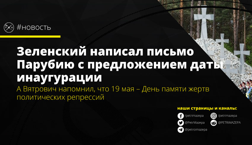 Победитель президентских выборов Владимир Зеленский написал письмо главе Верховной Рады Андрею Парубию с предложением назначить его инаугурацию на 19 мая, чтобы избежать «вакуума власти» и обеспечить наискорейшее приобретение избранным Президентом его полномочий. Как напомнил директор Института национальной памяти Владимир Вятрович, выбранная Зеленским дата – День памяти жертв политических репрессий, то есть день траура.