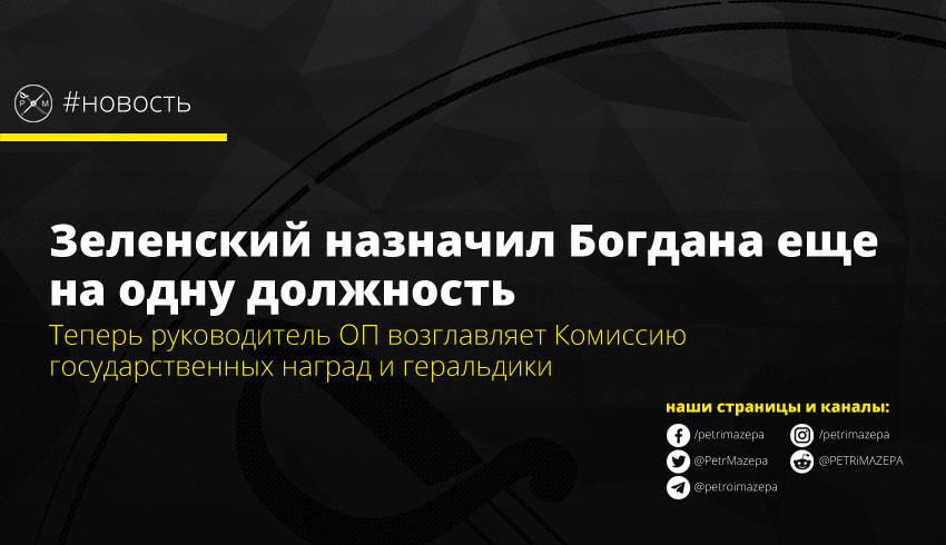 Президент Украины Владимир Зеленский утвердил состав Комиссии государственных наград и геральдики. Главой Комиссии назначен руководитель Офиса президента Андрей Богдан, его замом стал руководитель аппарата ОП Алексей Днипров.