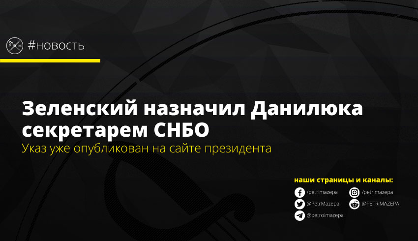 Президент Владимир Зеленский назначил экс-министра финансов Александра Данилюка секретарем Совета национальной безопасности и обороны Украины. Об этом говорится в указе №327/2019, опубликованном на официальном сайте главы государства.