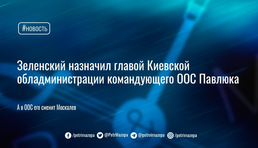 «Чтобы дополнительно усилить оборону столицы и Киевской области я назначил руководителем областной военной администрации Александра Павлюка, Героя Украины, генерал-лейтенанта, командующего Операцией объединенных сил. Уволенный глава областной администрации Алексей Кулеба будет помогать военному руководству. Так что киевское направление и ситуация в области получают еще большее внимание. Новым командующим ООС стал генерал-майор Эдуард Москалёв – профессиональный человек, патриотичный человек», - сказал Зеленский в дневном видеообращении.
