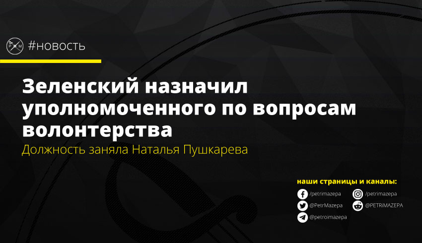 Президент Владимир Зеленский назначил внештатной уполномоченной Президента по вопросам волонтерской деятельности координатора Национального альянса волонтеров Наталью Пушкареву.
