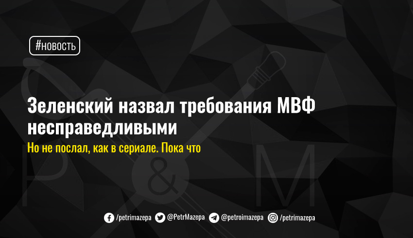 Президент Владимир Зеленский считает, что в контексте сотрудничества с Международным валютным фондом несправедливо выдвигать Украине такие же требования, как другим государствам.