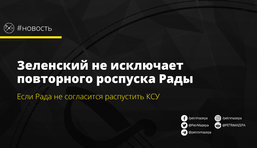 «...если это будет политический коллапс и реальный политический конфликт, и я увижу, что среди «слуг народа» нет поддержки... Они должны понимать ответственность. Если мы пойдем вразрез, то будем выходить из этого угла даже таким путем (роспуска парламента - ред.)», - сказал Зеленский.