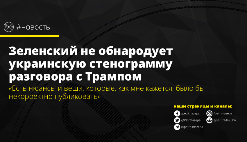 Зеленский не обнародует украинскую стенограмму разговора с Трампом