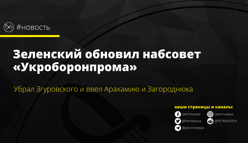 Президент Украины Владимир Зеленский сегодня подписал указ, которым прекратил полномочия Михаила Згуровского (ректор КПИ) как члена Наблюдательного совета ГК «Укроборонпром». Там же сообщается о назначении двух новых членов набсовет концерна.