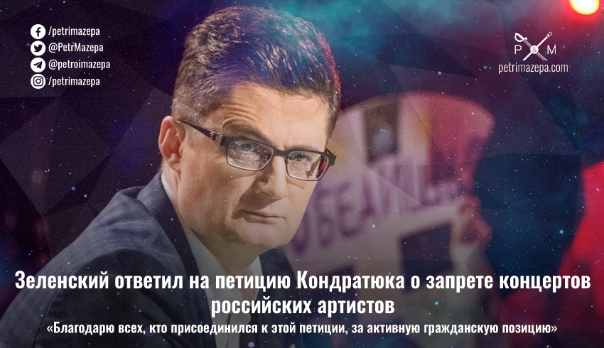 Зеленский ответил на петицию Кондратюка о запрете концертов российских артистов