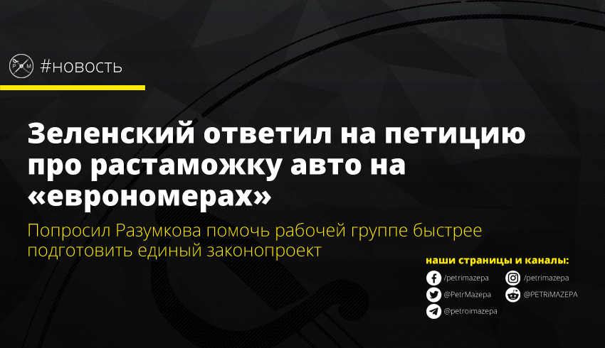 Президент Владимир Зеленский ответил на петицию про «выполнение обещания, данного своим избирателям и избирателям политической партии "Слуга народа", относительно решения вопроса доступной растаможки и нахождения на территории Украины автомобилей с европейской регистрацией».