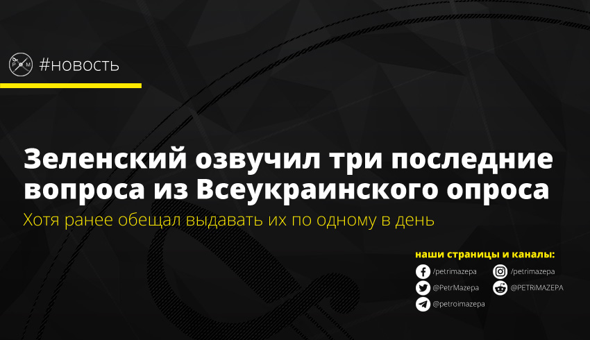 Зеленский озвучил три последних вопроса из Всеукраинского опроса