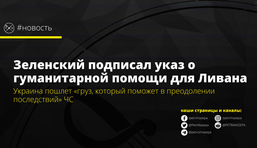 Президент Владимир Зеленский подписал указ № 319/2020 «О предоставлении гуманитарной помощи Ливанской республике». Об этом сообщается на официальном сайте главы государства.