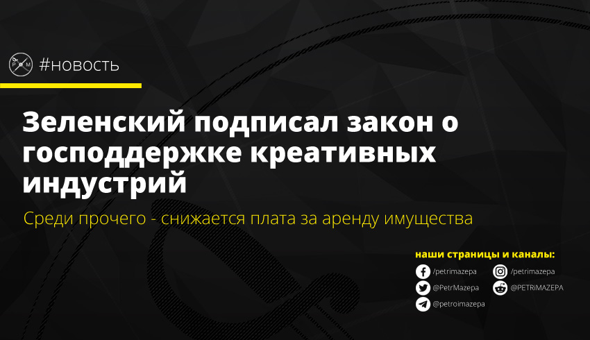 Президент Украины Владимир Зеленский подписал закон о государственной поддержке сферы культуры, креативных индустрий, а также туризма .