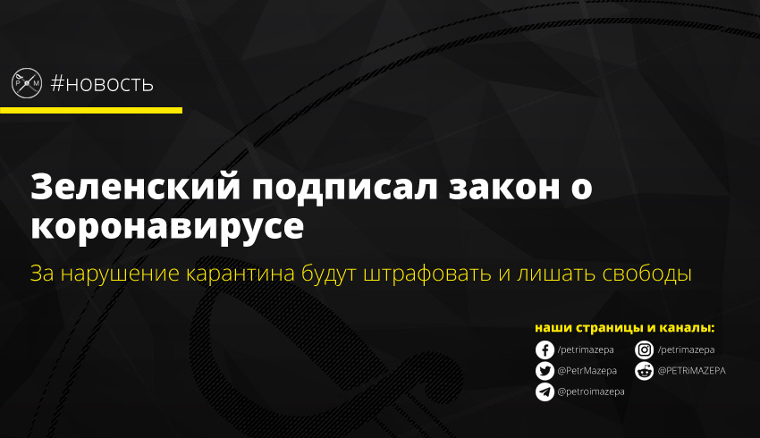 Президент Украины Владимир Зеленский подписал закон о борьбе с распространением коронавируса, принятый 17 марта Верховной Радой. Закон вступает в силу со дня опубликования и будет действовать в течение 3 месяцев.