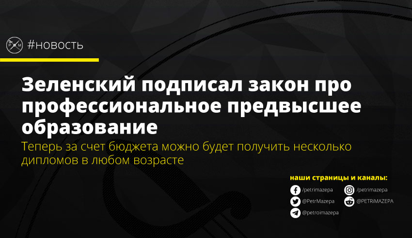 Президент Украины Владимир Зеленский подписал закон «О профессиональном предвысшем образовании». Среди нововведений нового закона: внедрение системы корпоративного управления, отсутствие ограничений по возрасту и количеству дипломов, и новая система государственного финансирования.