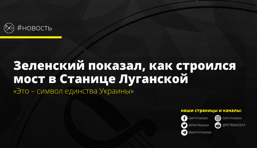 Президент Владимир Зеленский опубликовал видео процесса строительства моста в Станице Луганской. Красивая нарезка под музыку не обошлась без самого президента и без заявлений что мол это «не просто мост, а символ единства Украины».