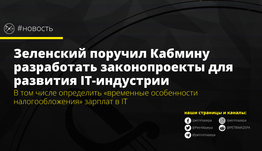Президент Владимир Зеленский поручил Кабинету министров разработать и внести на рассмотрение Верховной рады законопроекты для развития IT-индустрии в стране – в частности, на упрощение получения IT-специалистами разрешения на иммиграцию, а IT-компаниями разрешения на работу иностранцев, и на определение на законодательном уровне «временных особенностей налогообложения» зарплат в IT.