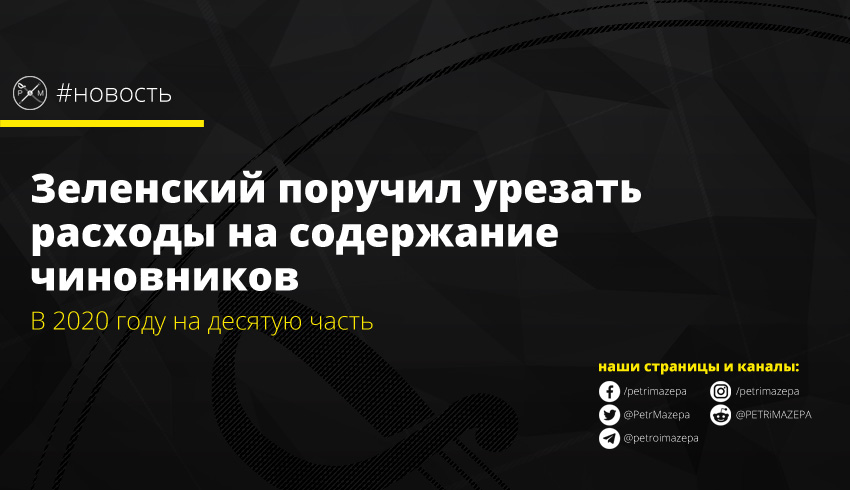Зеленский на своей Facebook-странице написал, что после выступления министра финансов, касающегося основных показателей, он поставил задачу сократить расходы госбюджета на следующий год на содержание чиновников на 10%. По его словам, это должно позволить сэкономить средства и направить их на социально важные статьи бюджета.