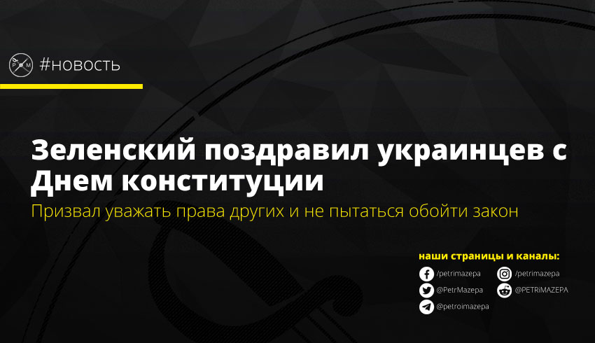 Президент Владимир Зеленский выпустил поздравление с Днем конституции Украины. В нем он призвал всех вспомнить, что для них Конституция, научиться уважать конституционные права и уважать закон.