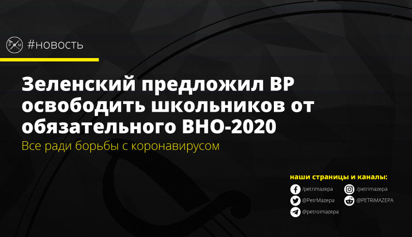 Президент Владимир Зеленский подал в ВР законопроект об освобождении школьников выпуска 2020 от прохождения обязательного внешнего независимого оценивания в связи с COVID-19. Законопроект определен президентом как неотложный.