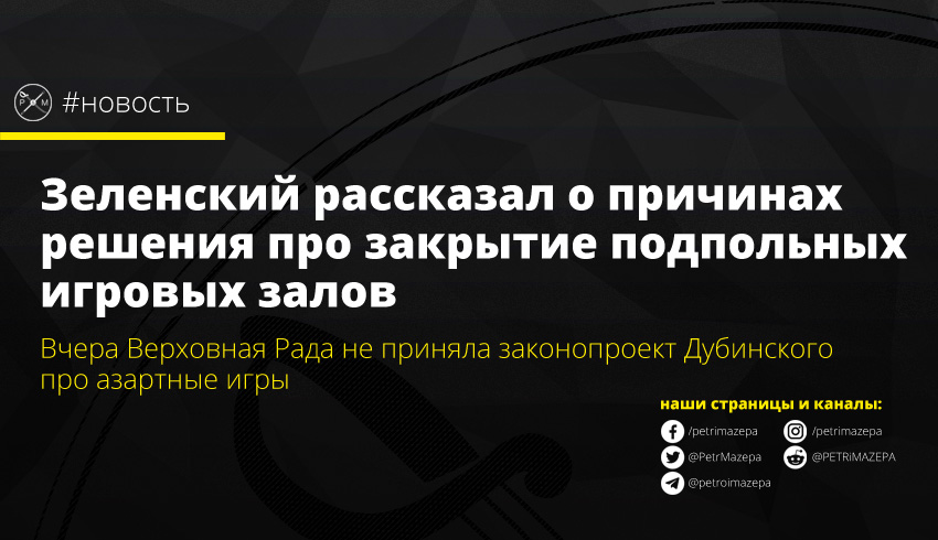Зеленский рассказал о причинах решения про закрытие подпольных игровых залов