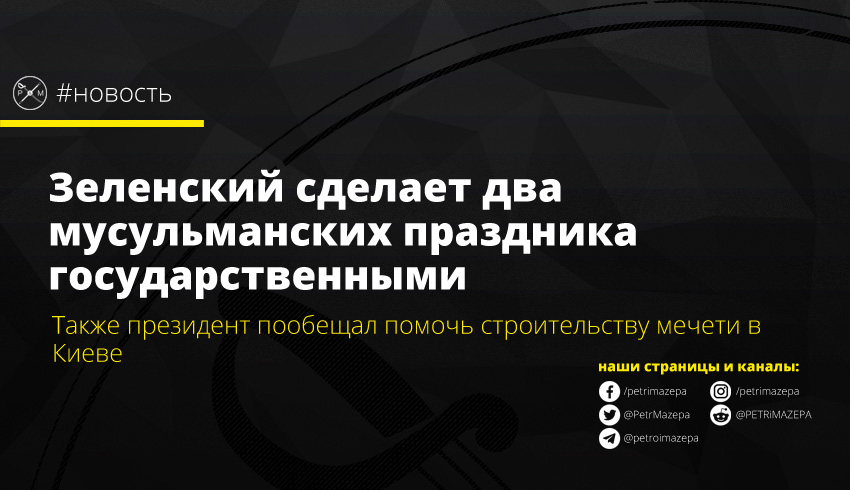 Президент Украины Владимир Зеленский провел встречу с представителями крымско-татарского народа. На ней глава государства рассказал, что планирует вскоре подписать указ про присвоение Курбан-Байраму и Ураза-Байраму статуса государственных религиозных праздников. Также он рассказал, что готов способствовать строительству в Киеве большой мечети и ждет только проекта.