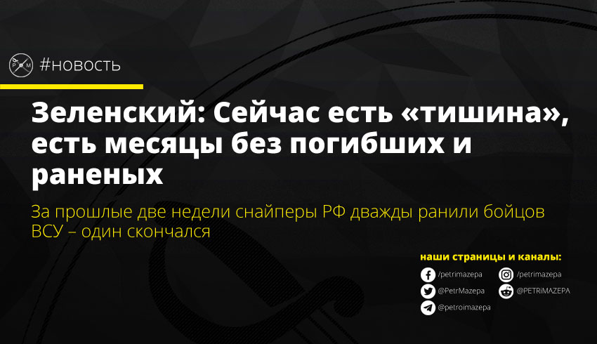 Президент Зеленский сообщил, что сейчас есть месяц без погибших и раненых на Донбассе. При этом о последнем ранении нанесенном именно снайперским огнем Украинская делегация в ТКГ отчитывалась около двух дней назад, 4 декабря, а последний убитый российским снайпером боец скончался в больнице 24 ноября.