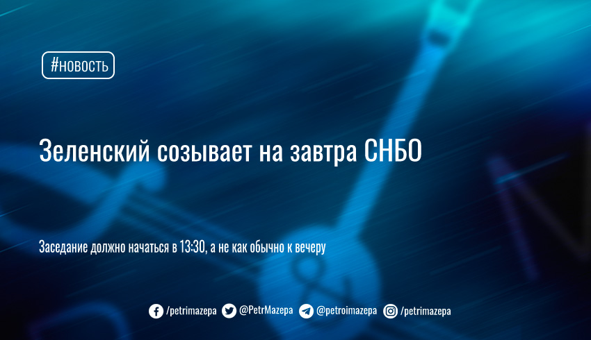 «Президент Украины Владимир Зеленский поручил Секретарю Совета национальной безопасности и обороны Украины Алексею Данилову организовать проведение 10 ноября 2021 года в 13:30 в Киеве заседания СНБО Украины (в Офисе президента Украины). Все члены СНБО Украины проинформированы о дате, времени и месте проведения заседания», - говорится в сообщении пресс-службы СНБО.