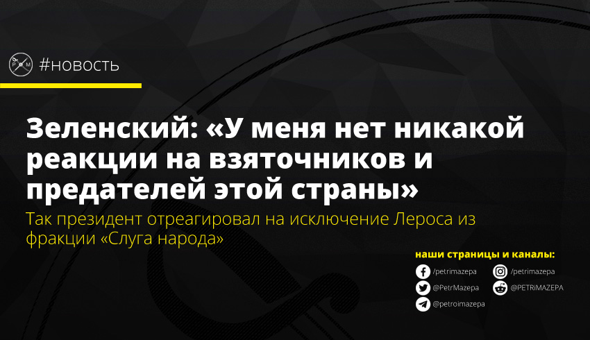 Во время визита в Харьковскую область президент Украины Владимир Зеленский ответил на вопрос журналистов про исключение Гео Лероса из фракций «Слуга народа» в парламенте. Сам Лерос утверждает, что приказ про исключение был передан самим Зеленским.
