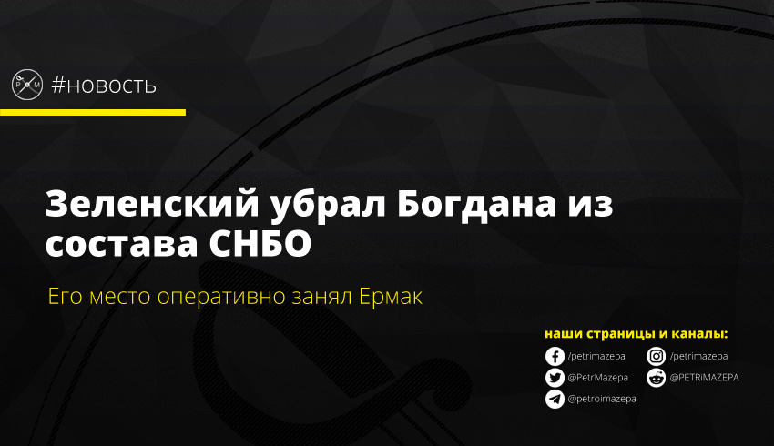 Президент Украины Владимир Зеленский внес изменения в состав Совета национальной безопасности и обороны (СНБО) Украины. Судя по всему, Богдан не собирается оставаться в команде президента, а поэтому его оперативно убрали и из состава СНБО.