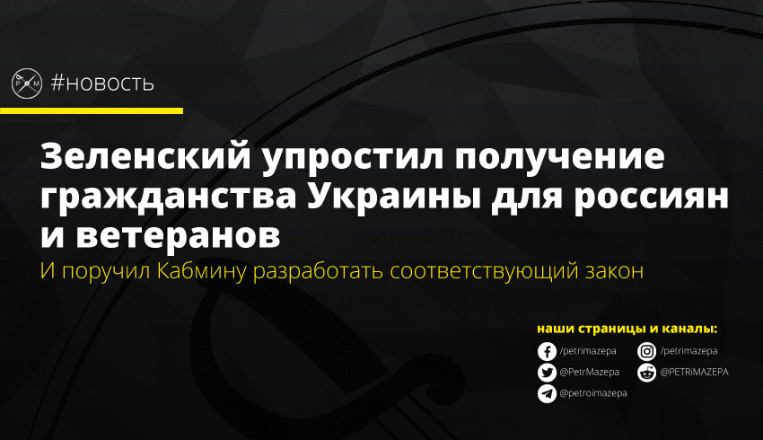 Президент Украины Владимир Зеленский издал указ касательно упрощения получения гражданства Украины ветеранами войны на Донбассе и гражданами РФ, которые подвергаются в стране-агрессоре политическим преследованиям. Указом внесены изменения в Порядок производства по заявлениям и представлениям по вопросам президента Украины и исполнения таких решений, а также поручено Кабмину безотлагательно разработать и внести в ВР законопроект, направленный на упрощение получения гражданства для россиян и ветеранов.