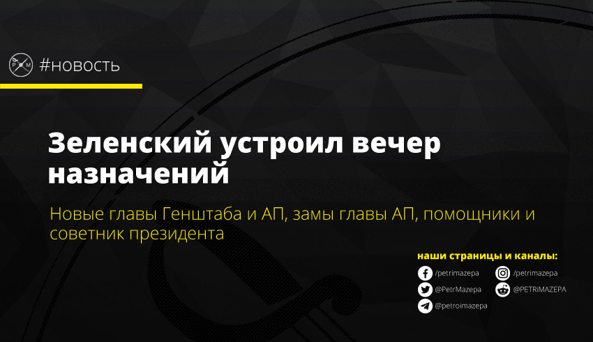 После Указа президента о роспуске Верховной Рады и проведении досрочных выборов, Зеленского прорвало. Был уволен начальник Генштаба ВСУ Виктор Муженко и назначены новый глава Генштаба, глава АП и его замы, помощники и советник Президента, а также - представитель Президента в Верховной Раде.
