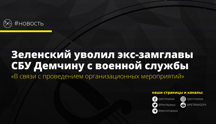 Президент Украины Владимир Зеленский уволил с военной службы бывшего заместителя главы Службы безопасности Украины, экс-руководителя Главного управления по борьбе с коррупцией и организованной преступностью Павла Демчину.