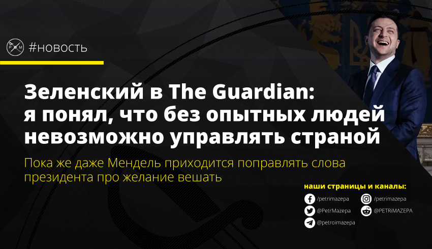 Зеленский в The Guardian: я понял, что без опытных людей невозможно управлять страной
