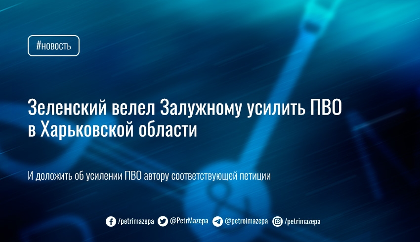 Президент Владимир Зеленский поручил главнокомандующему Вооруженных сил Валерию Залужному рассмотреть просьбу об усилении ПВО в Харьковской области.