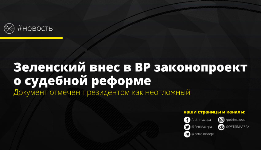 Президент Владимир Зеленский внес в Верховную раду Украины законопроект №3711 «О внесении изменений в Закон Украины “Про судоустройство и статус судей” и некоторых законов Украины касательно деятельности Верховного суда и органов судейского управления».