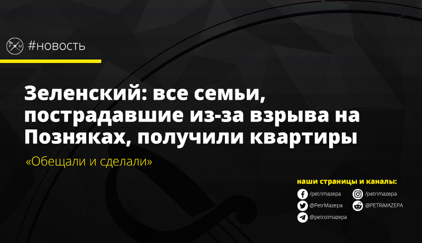 Президент Владимир Зеленский сообщил о том, что все семьи, пострадавшие в результате взрыва на Позняках в Киеве, получили новое жилье.
