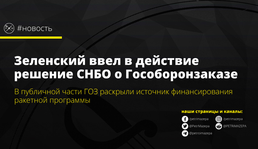 Контроль за выполнением решения СНБО, введенного в действие этим указом, возложена на секретаря СНБО Алексея Данилова. К указу прилагается публичная часть гособоронзаказа (без подпункта 5 пункта 2, пункта 3, подпункта 2 пункта 7). В ней ракеты упоминаются один раз, когда Кабинету министров говорят обеспечить финансирование приоритетных проектов, «в частности по развитию ракетного вооружения, которое осуществлять исключительно за счет общего фонда государственного бюджета Украины».
