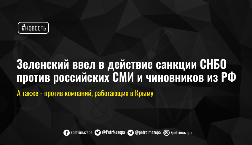 Зеленский ввел в действие санкции СНБО против российских СМИ и чиновников из РФ